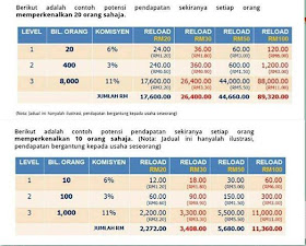 Itu hanya contoh jika masing-masing memperkenalkan 10 orang sahaja dan topup minima RM30. Saya yakin dengan program sekecil ini dengan mudah anda boleh melakukan lebih dari itu.